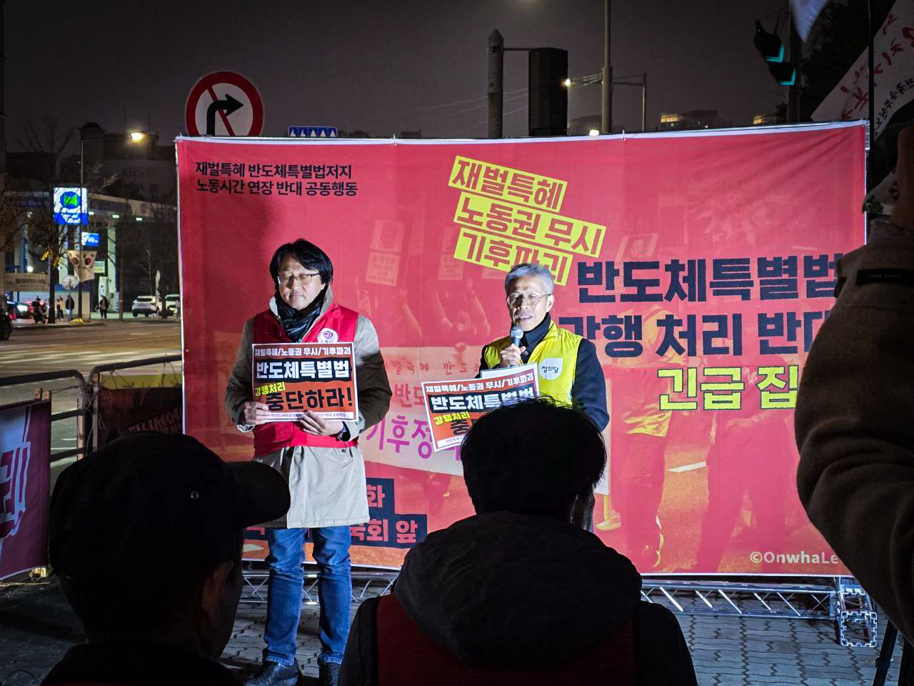 반노동•반기후•재벌특혜 반도체특별법 강행 시도를 결코 좌시할 수 없습니다. 재벌만을 위한 반도체특별법을 폐기하고, 반도체산업에 대한 공적 통제를 시행해야 합니다. 반도체특별법 저지를 위해 노동당이 끝까지 싸우겠습니다.