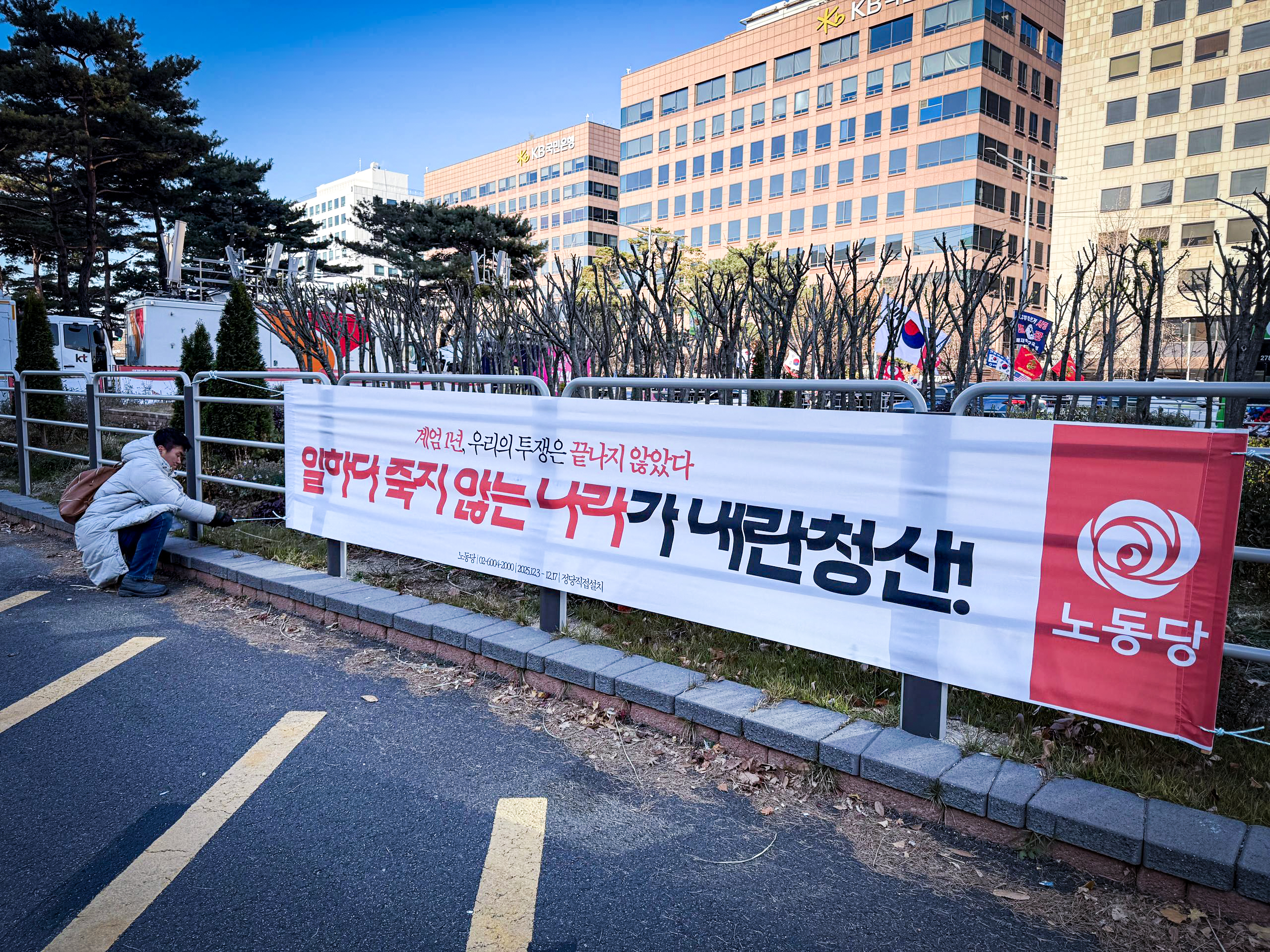 이후 3시부터 여의도 일대에서 열린 세계장애인의날 맞이 <장애인도 시민으로 이동하는 민주주의 행진>에는 이백윤 공동대표가 참석했습니다. 노동당은 아직 이뤄지지 않은 광장의 꿈들을 돌아보고 실현을 촉구하는 현수막을 여의도 일대에 게첩했습니다.