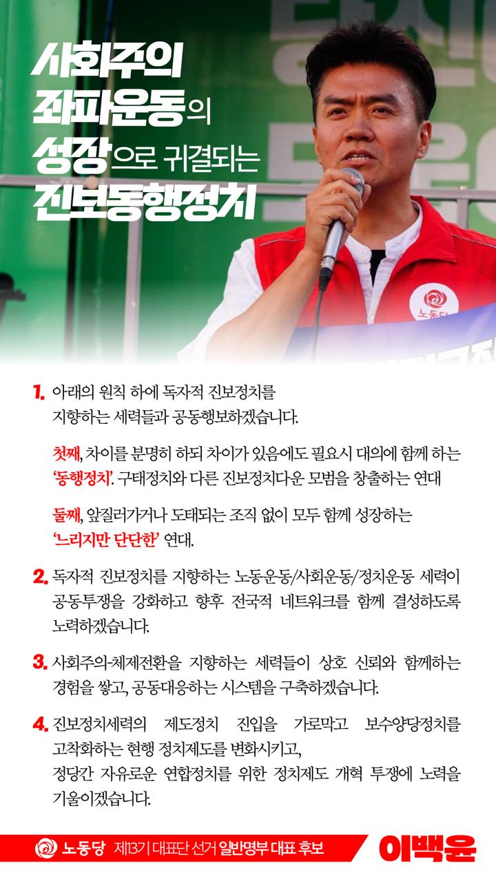- 아래의 원칙 하에 독자적 진보정치를 지향하는 세력들과 공동행보하겠습니다.