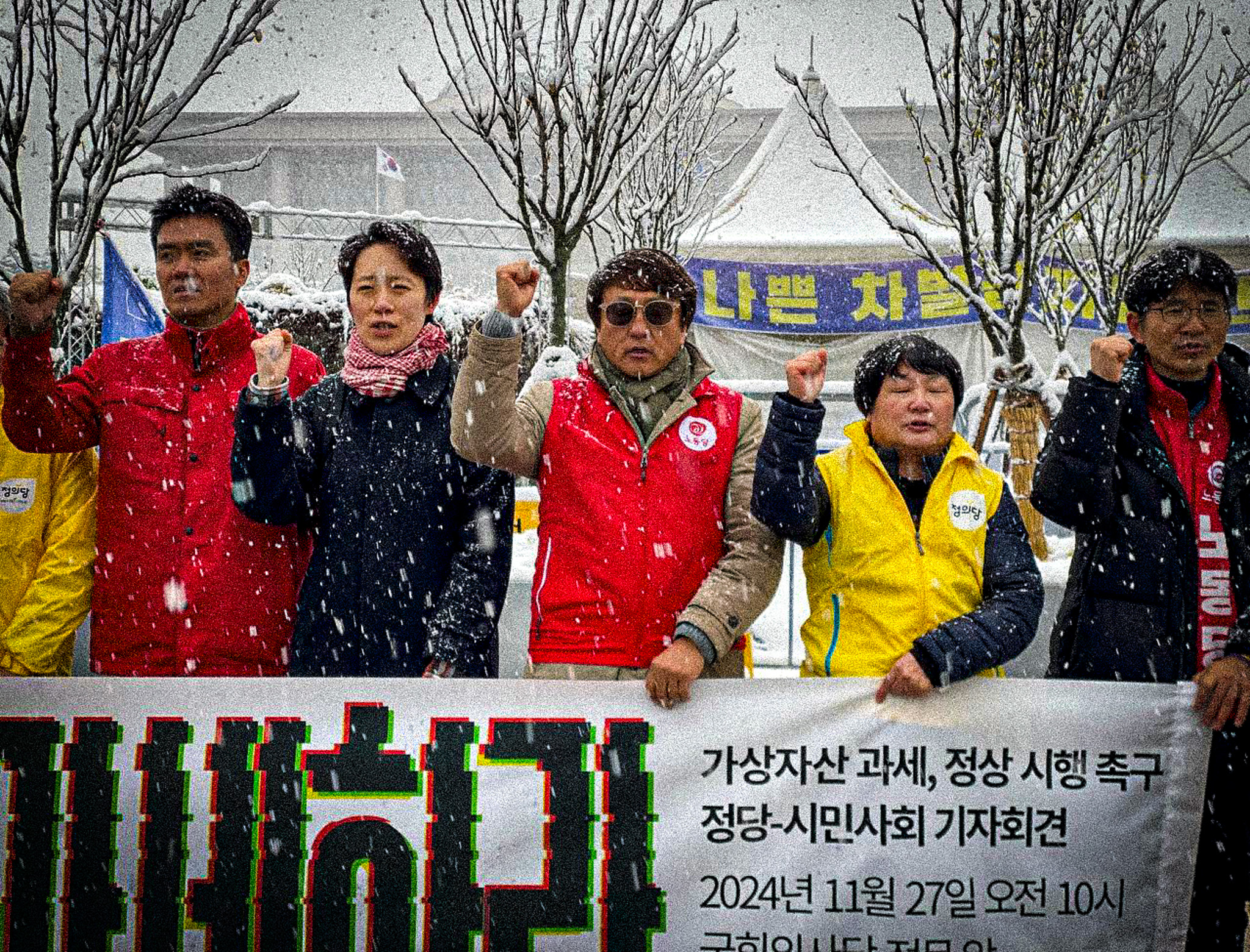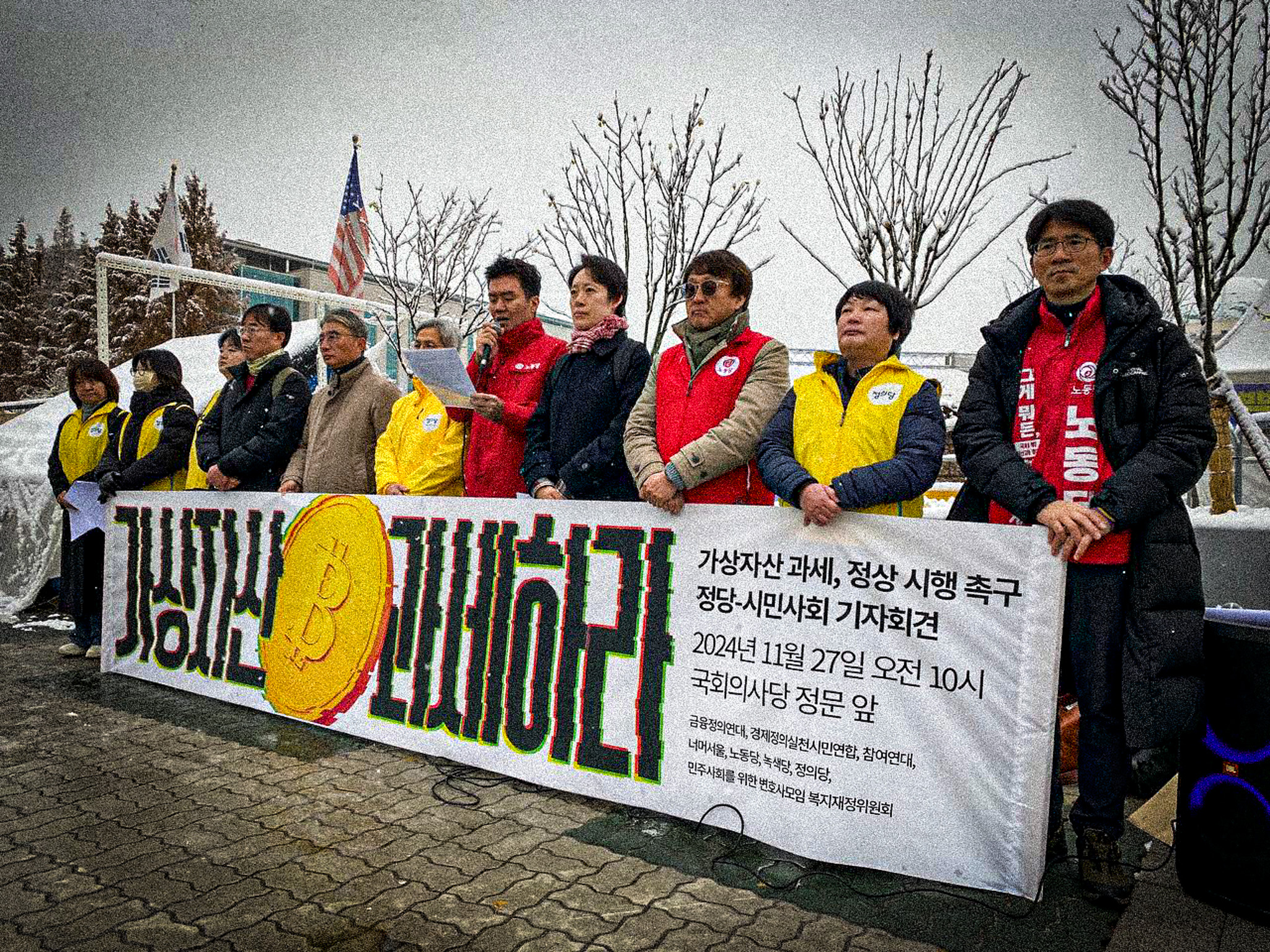정부·여당이 가상자산 과세 유예를 밀어붙이고 있습니다. 더불어민주당은 공제 한도를 5천만원으로 20배 상향하여 실시하자고 주장하고 있습니다. 거대 양당의 가상자산 과세 유예·무력화 시도를 규탄하며 가상자산 과세 정상 시행을 촉구하는 진보 3당 및 시민사회단체의 기자회견이 오늘 10시 국회 앞에서 열렸습니다.