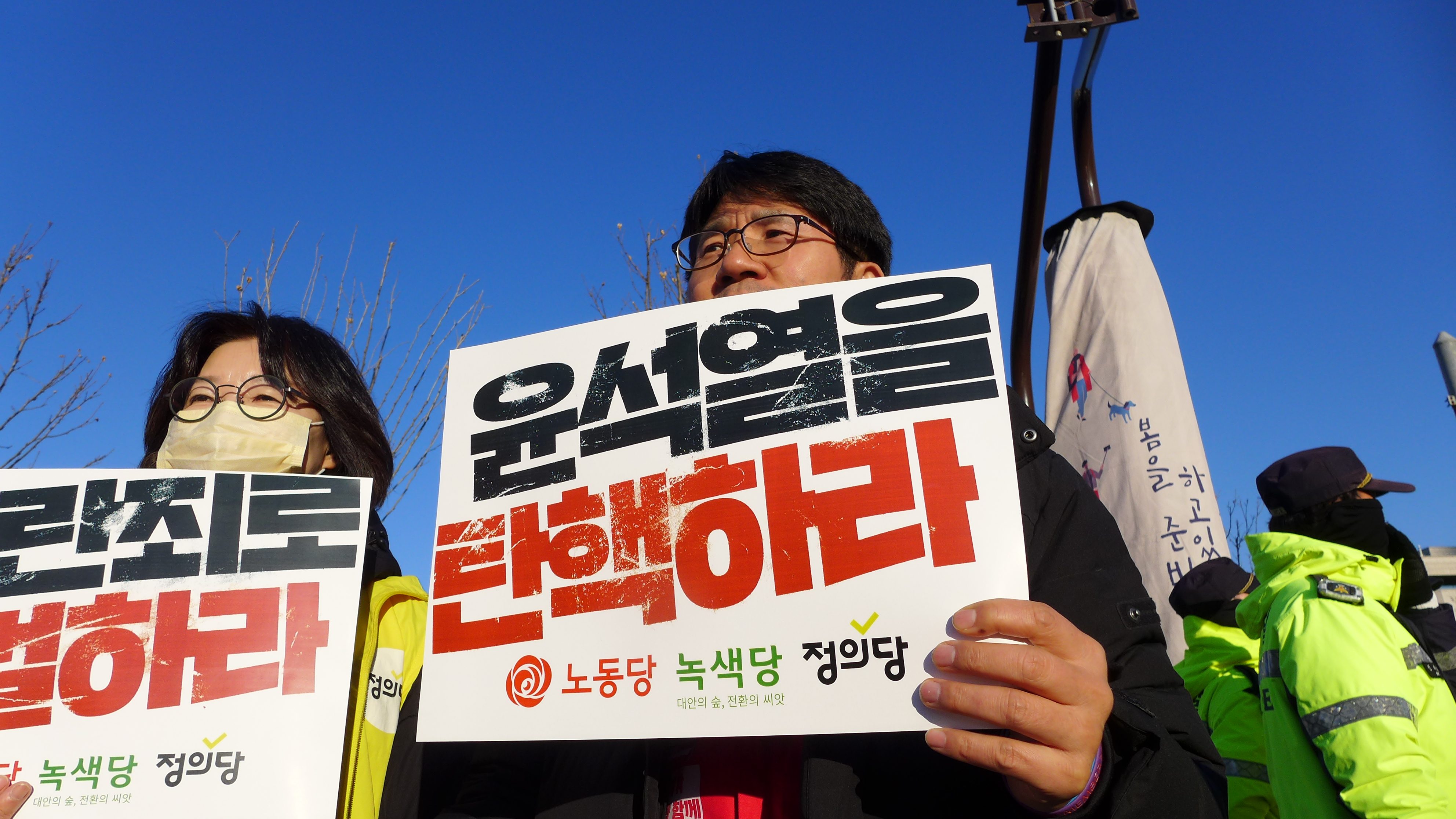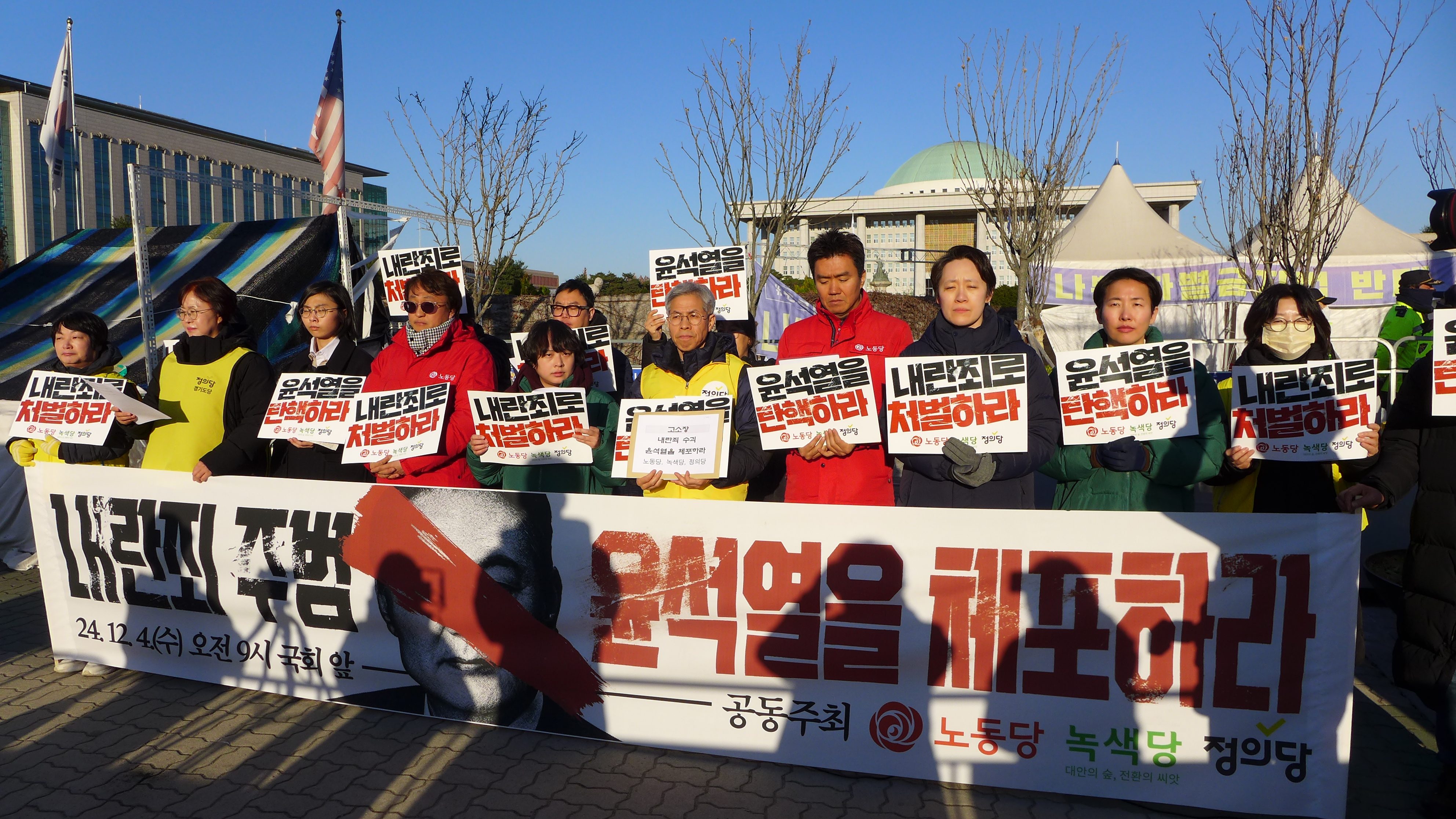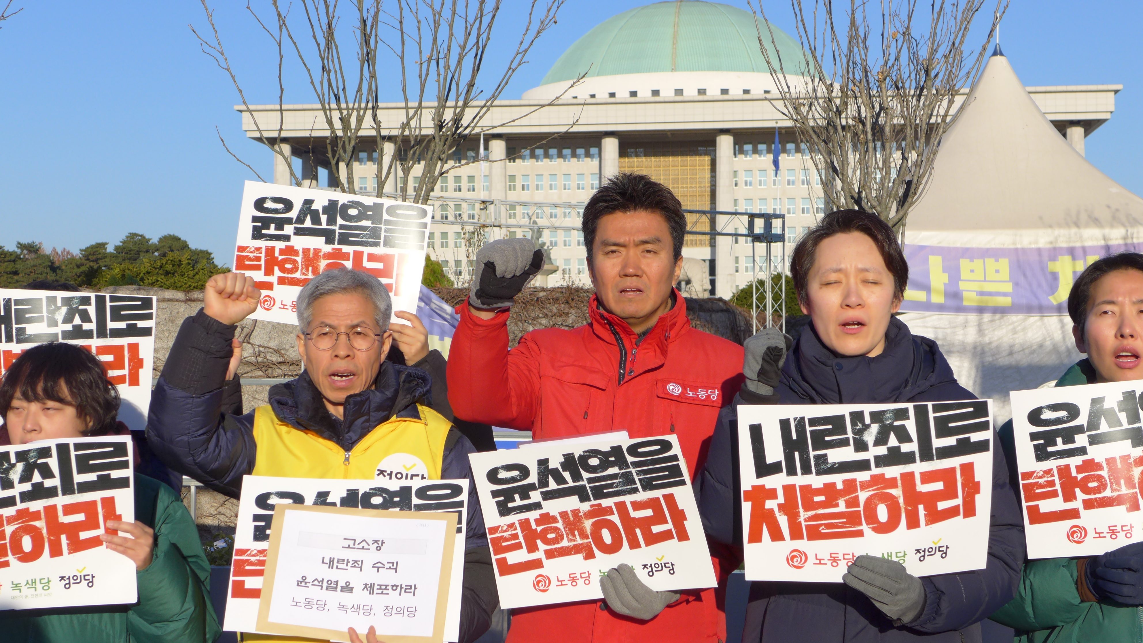 우리는 이번 사태를 통해 이런 대통령이 더 이상 21세기 대한민국과 공존할 수 없음을 확인했습니다. 윤석열은 더 이상 대통령 자격이 없습니다. 이제 그만 용산 집무실을 나와 감옥으로 갈 수 있도록, 진보 3당이 공동으로 윤석열을 내란죄로 고발합니다.