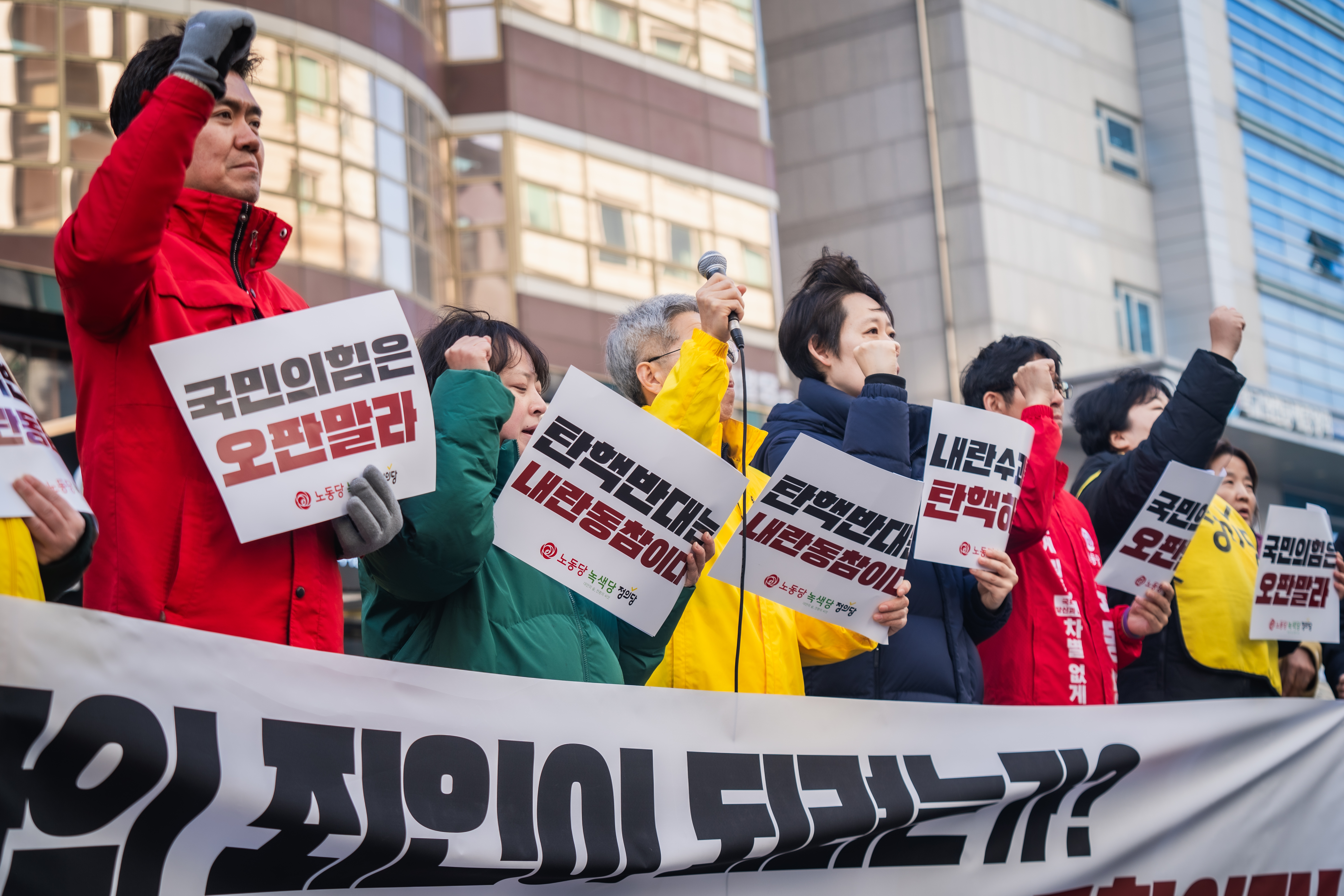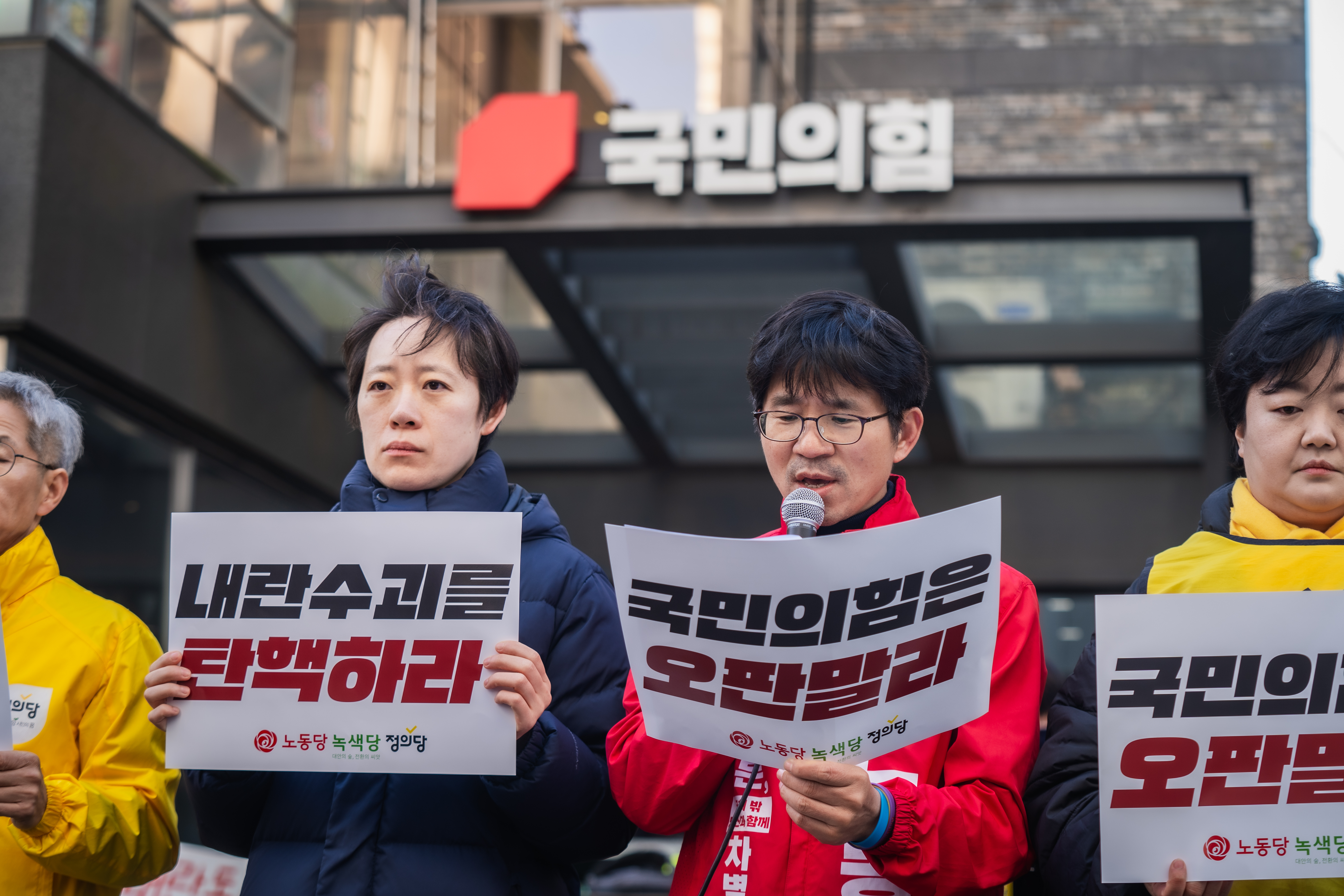수요일 아침을 뒤흔든 가장 큰 뉴스는 국민의힘이 ‘윤석열 탄핵 반대’를 당론으로 정했다는 소식이었습니다. 노동당-녹색당-정의당 진보3당은 국민의힘 앞에 모여 군사반란을 자행한 윤석열을 엄호하는 국민의힘을 향해 역사의 죄인이 되려 하느냐며 규탄의 목소리를 높였습니다.