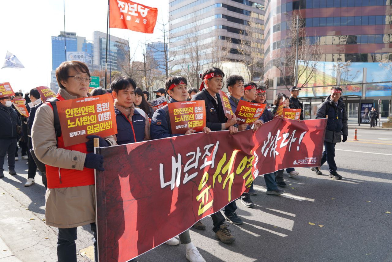 계엄령 해제 후 이틀차를 맞은 어제는 철도노조의 총파업 결의대회가 있었습니다. 어제 정오, 서울역 앞에서 철도노동자들이 모두를 위한 철도, 사회공공성 쟁취와 더불어 윤석열 퇴진을 외치며 총파업에 돌입했습니다. 철도노조 총파업 결의대회에 노동당이 함께하며, 계엄정권을 뒤흔드는 철도노동자들의 총파업에 힘을 실었습니다.