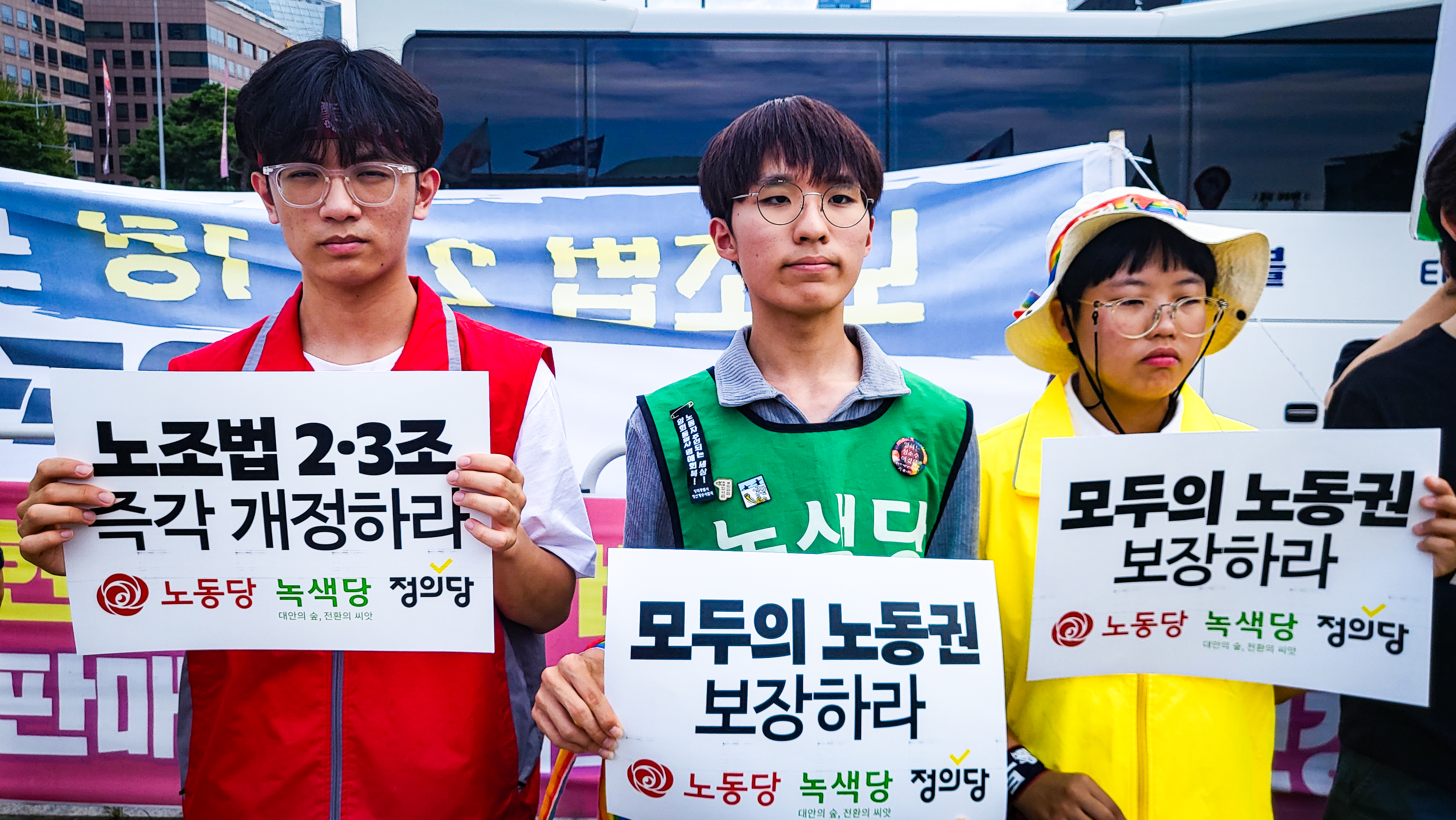 오늘 1시, 국회 앞에서 진보 3당이 기자회견을 열고 이재명 정부와 더불어민주당에 노조법 2•3조 개정을 ‘제대로’ 할 것을 촉구했습니다.