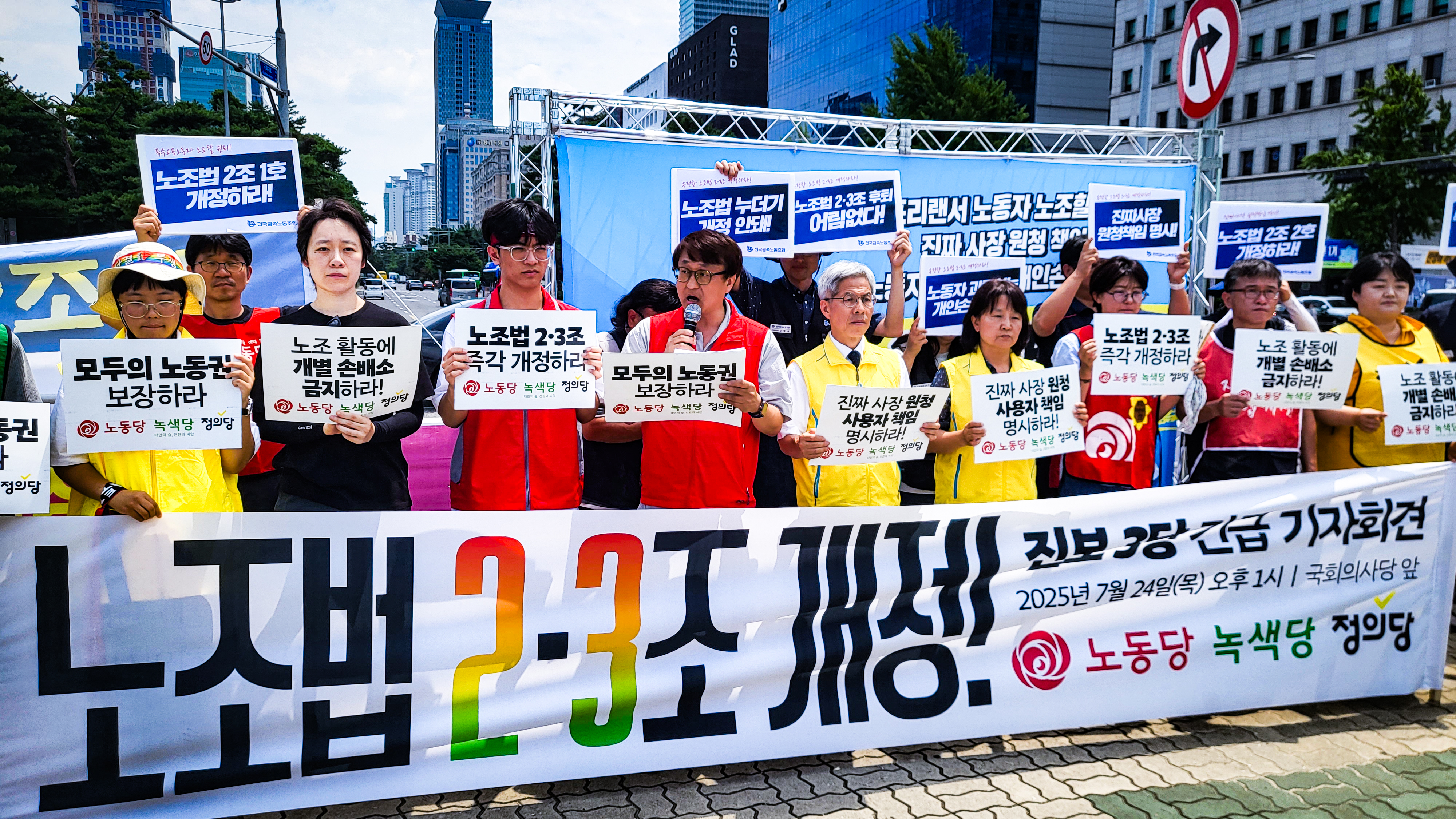 노조법 2.3조 개정 진보 3당 긴급 기자회견