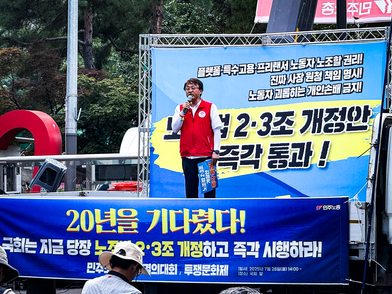 지난 7월 28일, 국회 앞에서 노조법 2•3조 개정안 즉각 통과 결의대회가 열렸습니다. 김성봉 부대표와 노동당 당원들이 이 날 결의대회에 함께했습니다.