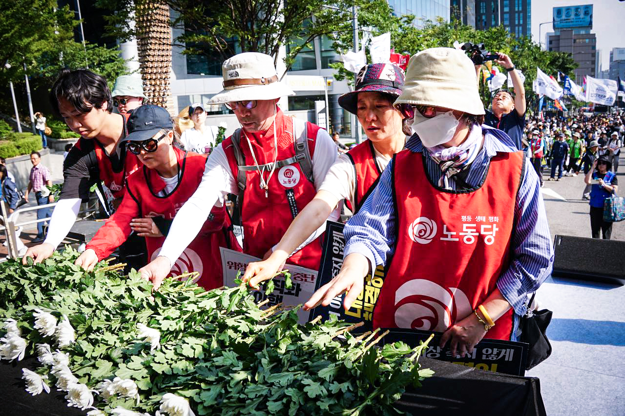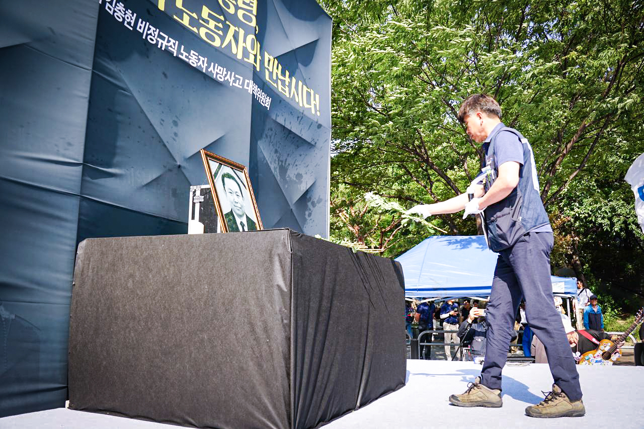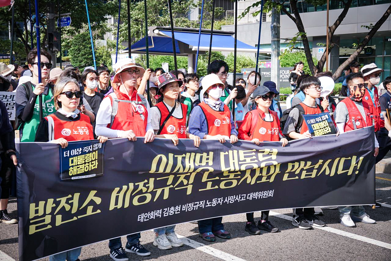 노동자의 피가 섞인 전기와 노동자의 피가 묻은 빵, 노동자의 죽음으로 쌓은 아파트가 여전히 일상처럼 만들어지고 있습니다. 지난 날 기업살인의 책임자를 강력하게 처벌했다면, 오늘 김충현 노동자의 죽음은 없었을지도 모릅니다. 진상 규명과 책임자 처벌을 위해 함께 투쟁하겠습니다. 더 나아가, 오늘의 비극을 만든 하청 구조와 비정규직을 철폐하고, 일하다 죽는 사람 없는 세상으로 결연히 나아가겠습니다.