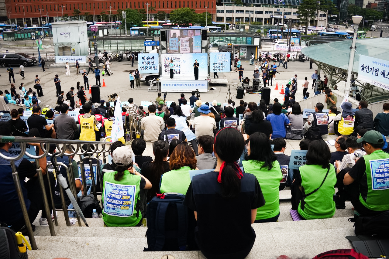 6월 21일 오후 4시, 서울역 광장에서 아리셀 중대재해참사 1주기 추모대회가 열렸습니다. 이백윤 대표와 노동당 당원들이 추모대회에 참여해 애도의 마음과 투쟁의 결의를 함께 나누었습니다.