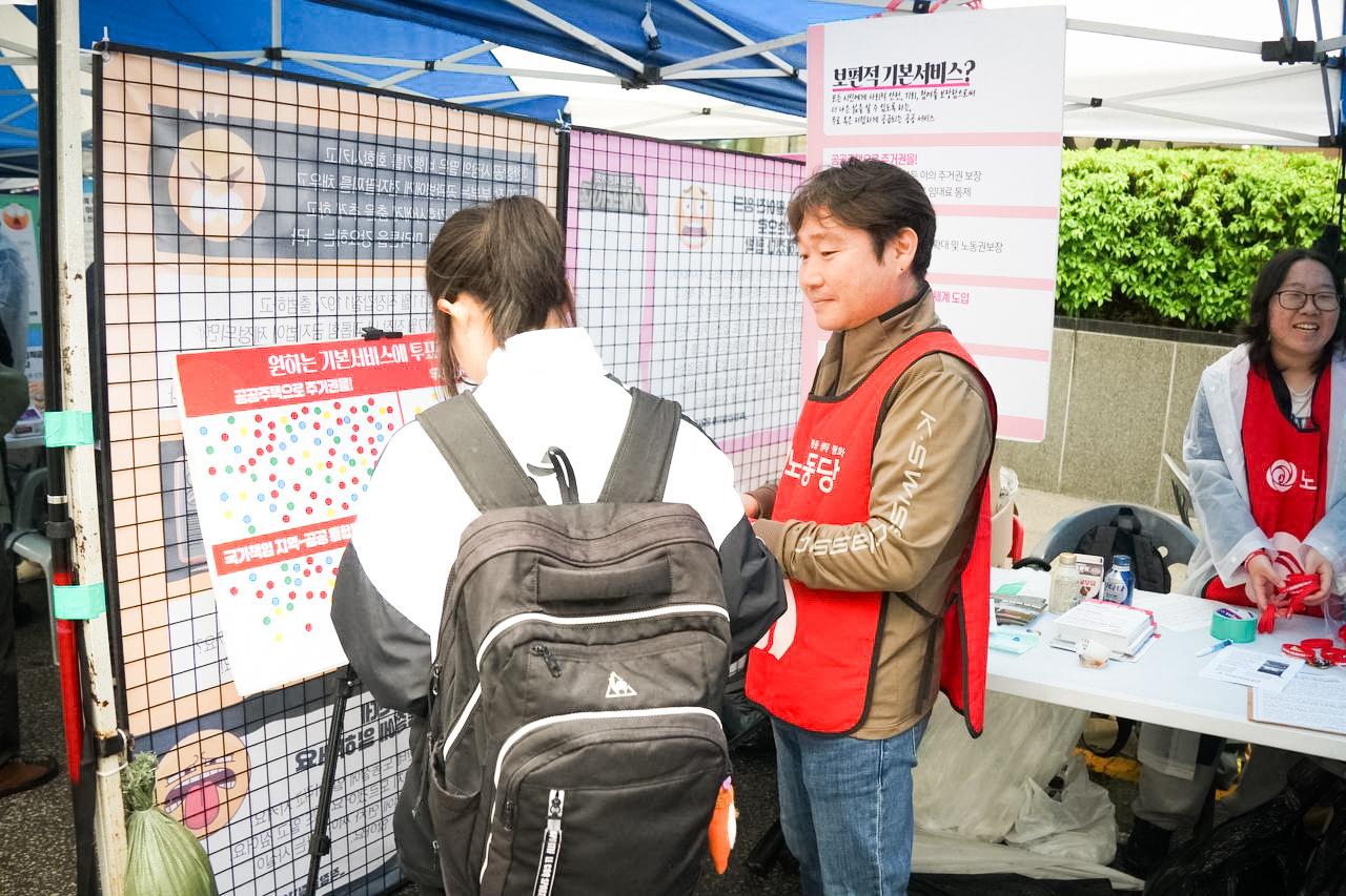 노동당은 <체제전환의 시작은 보편적 기본서비스> 부스를 열고, 윤석열 파면 이후 노동자 시민이 만들어 나갈 새로운 나라의 시작으로 보편적 기본서비스를 제안했습니다.