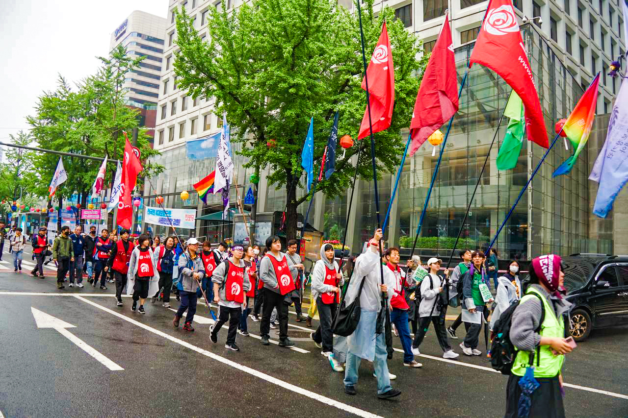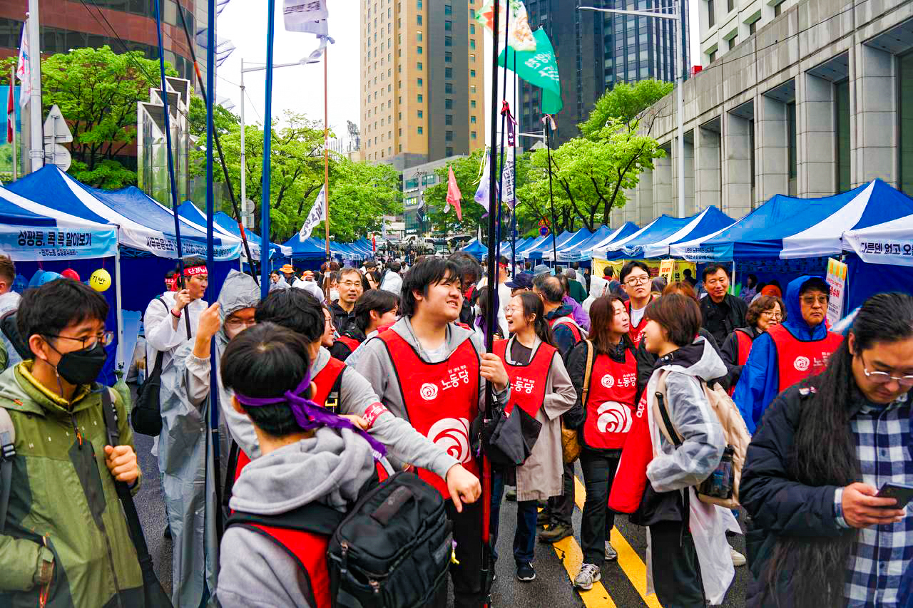 5월 1일, 민주노총 2025 세계노동절대회가 숭례문 앞에서 열렸습니다. 노동당은 오전 11시 광화문 앞에서 열린 사회대전환 연대회의 대선 출마 기자회견을 마치고, 사전 부스행사가 열리고 있는 노동절대회 현장에 합류해 노동당 부스를 개시했습니다.