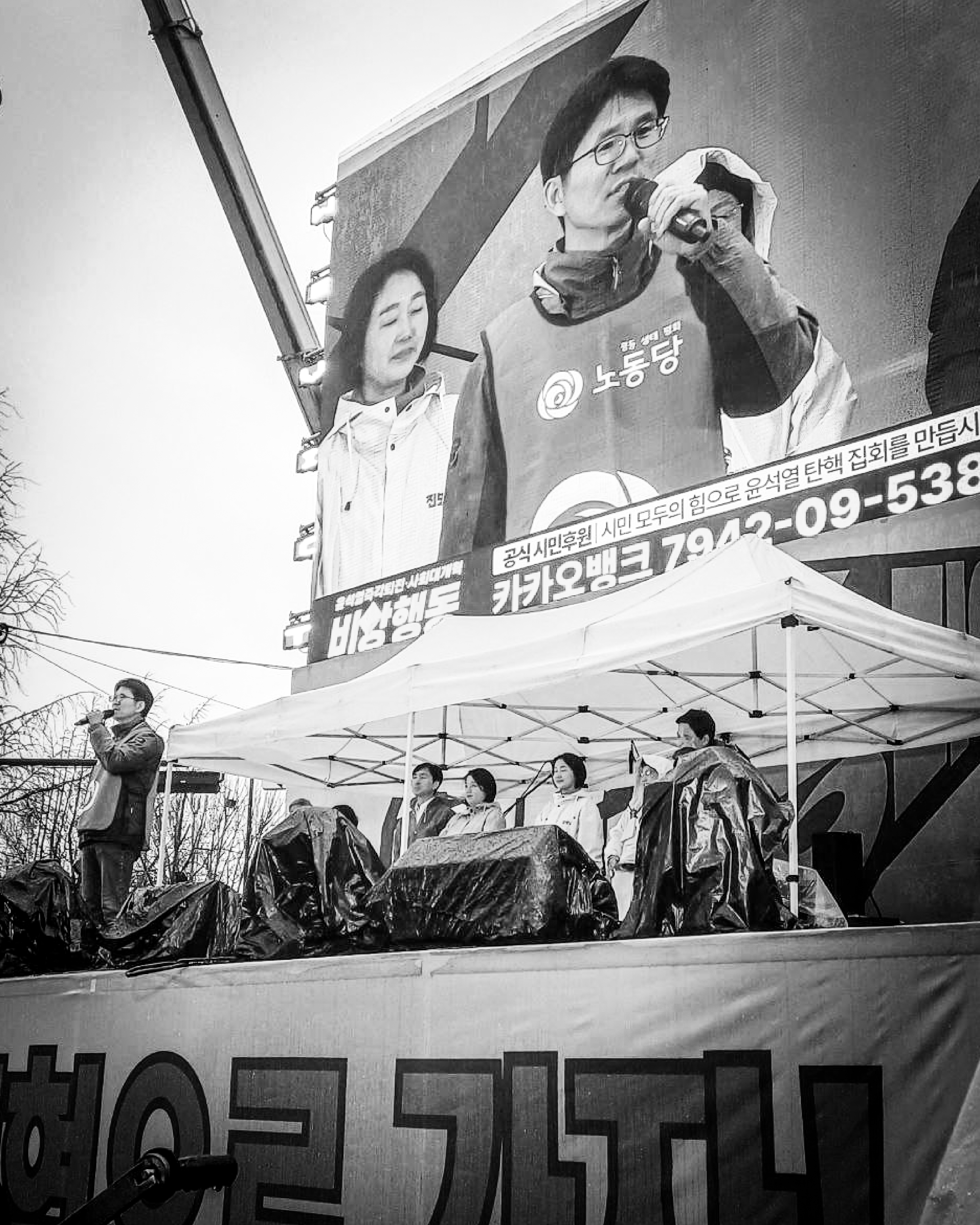 광장에 모인 우리가 멈추지 않는다면 우리들은 지금과는 전혀 다른 새로운 나라를 기필코 만들어 낼 것입니다. 노동당도 함께 하겠습니다.