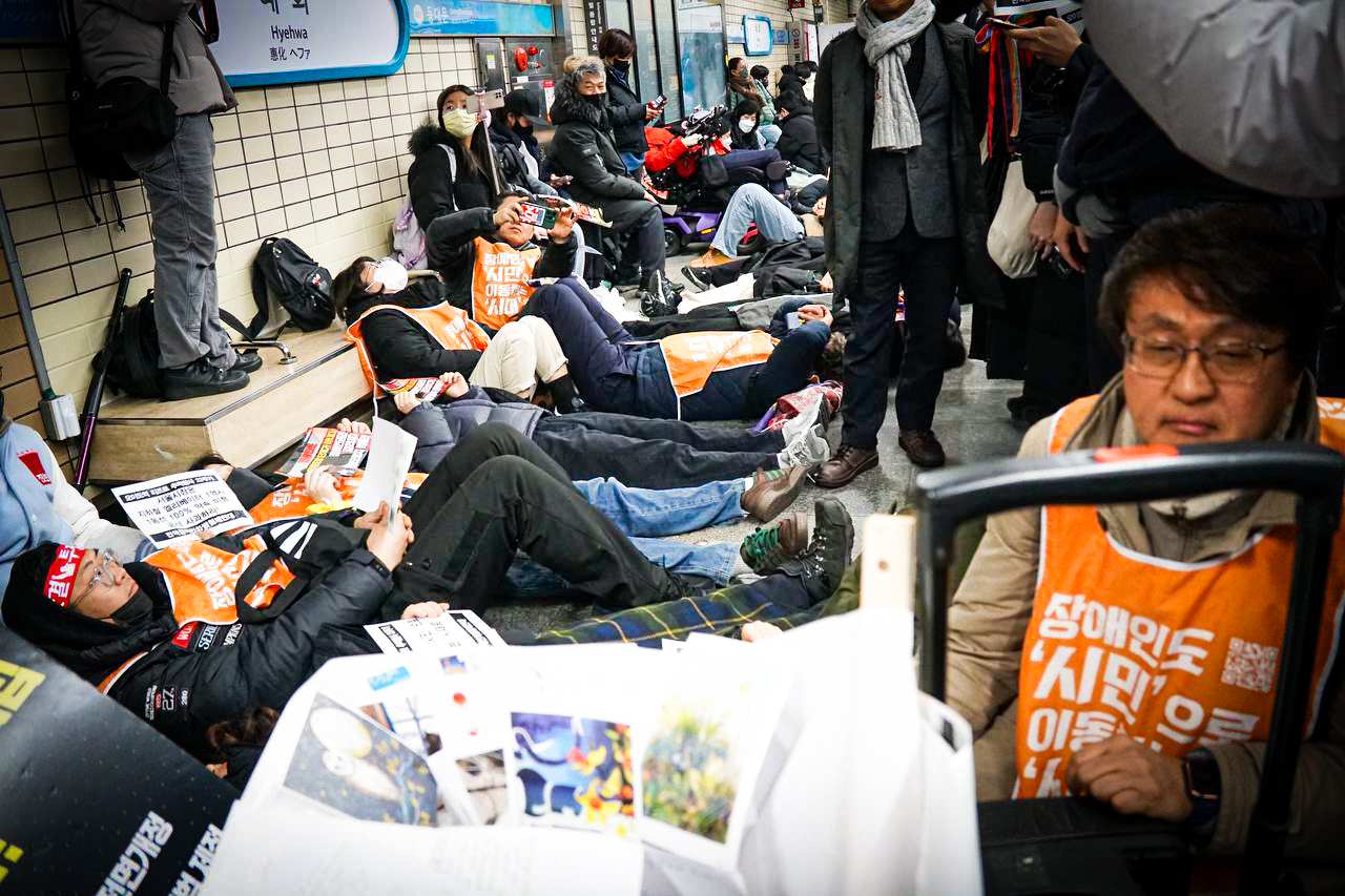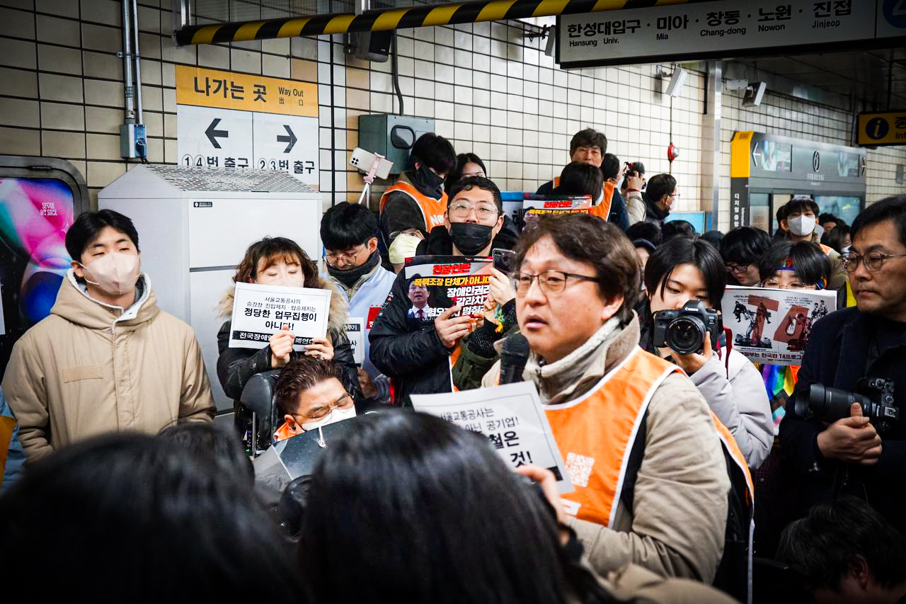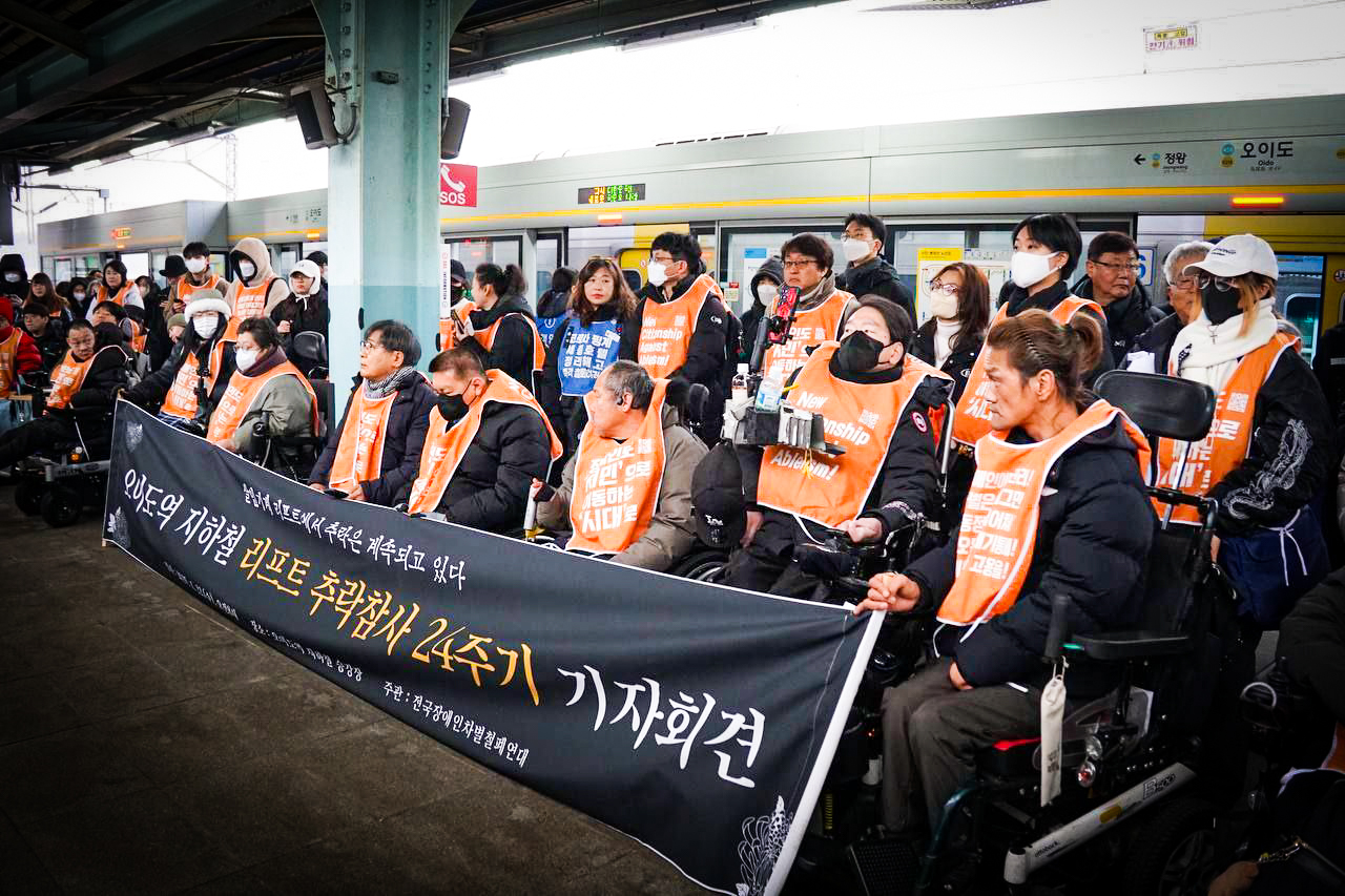 지난 1월 22일 수요일, 오이도역 휠체어 리프트 추락 참사 24주기 추모 행동이 있었습니다. 참사 24주기를 맞아, 추모 행동 참가자들은 오전 8시 오이도역에서 기자회견을 연 뒤, 혜화역까지 4호선 지하철을 함께 타며 장애인이동권 쟁취를 향한 결의의 마음을 모았습니다. 김성봉 부대표와 노동당 당원들 역시 오이도역에서 혜화역까지 함께했습니다.