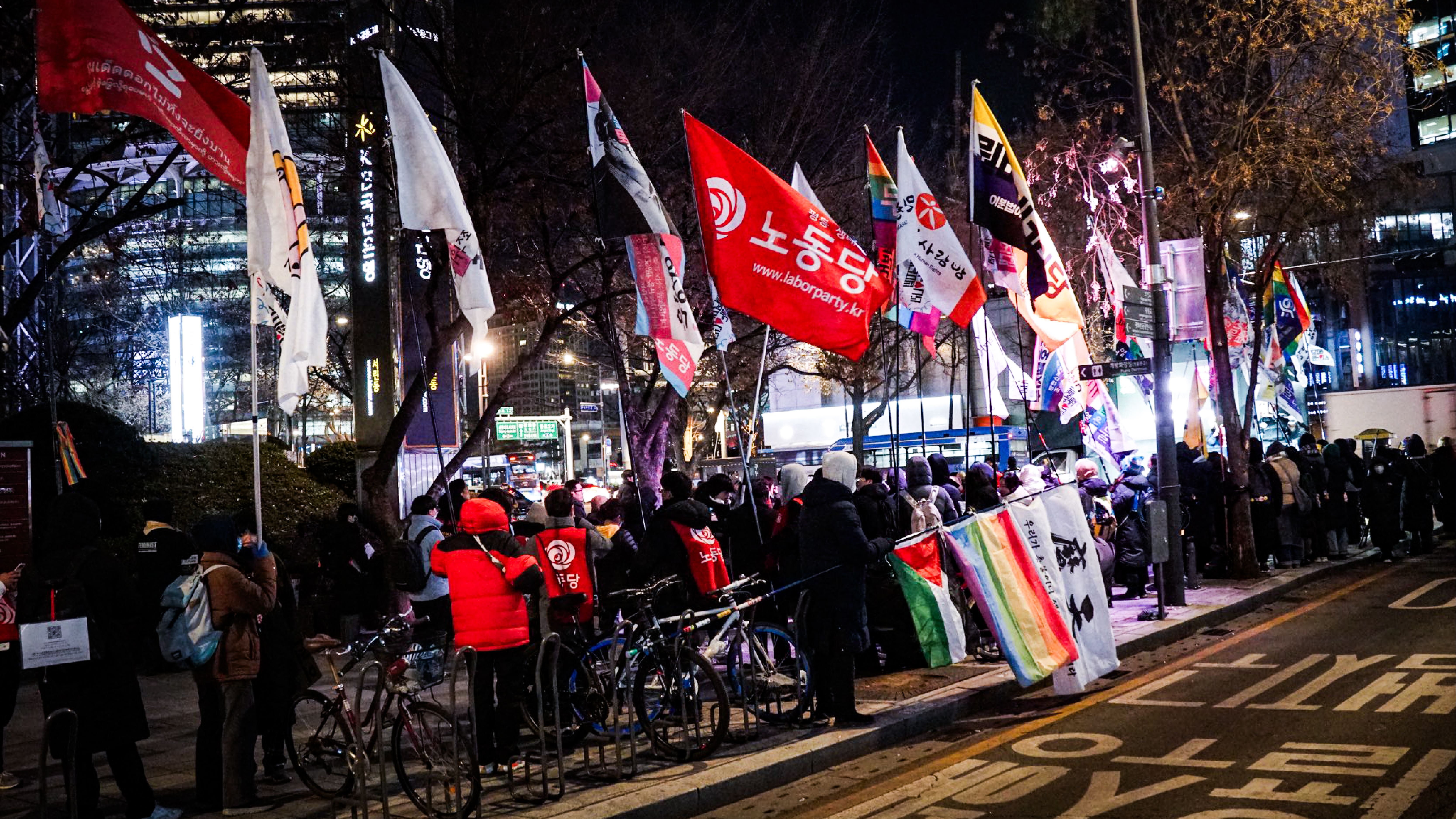 미국의 트럼프, 이스라엘의 네타냐후는 한국의 윤석열과 마찬가지로 세계적 민주주의 위기의 대표적 사례로 꼽히는 이들입니다. 이들은 평화보다 경제적•정치적 이득을 우선시하고, 권위적이고 가부장적이며, 차별과 혐오를 무기 삼고 있는 이들이라는 공통점이 있습니다. 미국과 이스라엘, 그리고 한국은 또한 제국주의 세계질서 아래에서 서로의 학살과 착취에 서로 공모하고 있기도 합니다. 미국은 이스라엘의 가장 큰 후원국이며, 한국은 서안 지구 주민들의 집을 부술 건설 장비와, 가자 지구 주민들을 죽이는 무기를 이스라엘에 수출하고 있습니다. 그리고 이런 죽음의 연결고리를 윤석열은 그동안 “가치 동맹”이라는 이름으로 포장해 왔습니다. 한국에서의 민주주의 위기와 팔레스타인에서의 집단학살은 이렇게 연루되어 있으며, 팔레스타인 해방이, 제국주의의 종식이 윤석열 퇴진 투쟁과 함께 가야 하는 이유입니다.