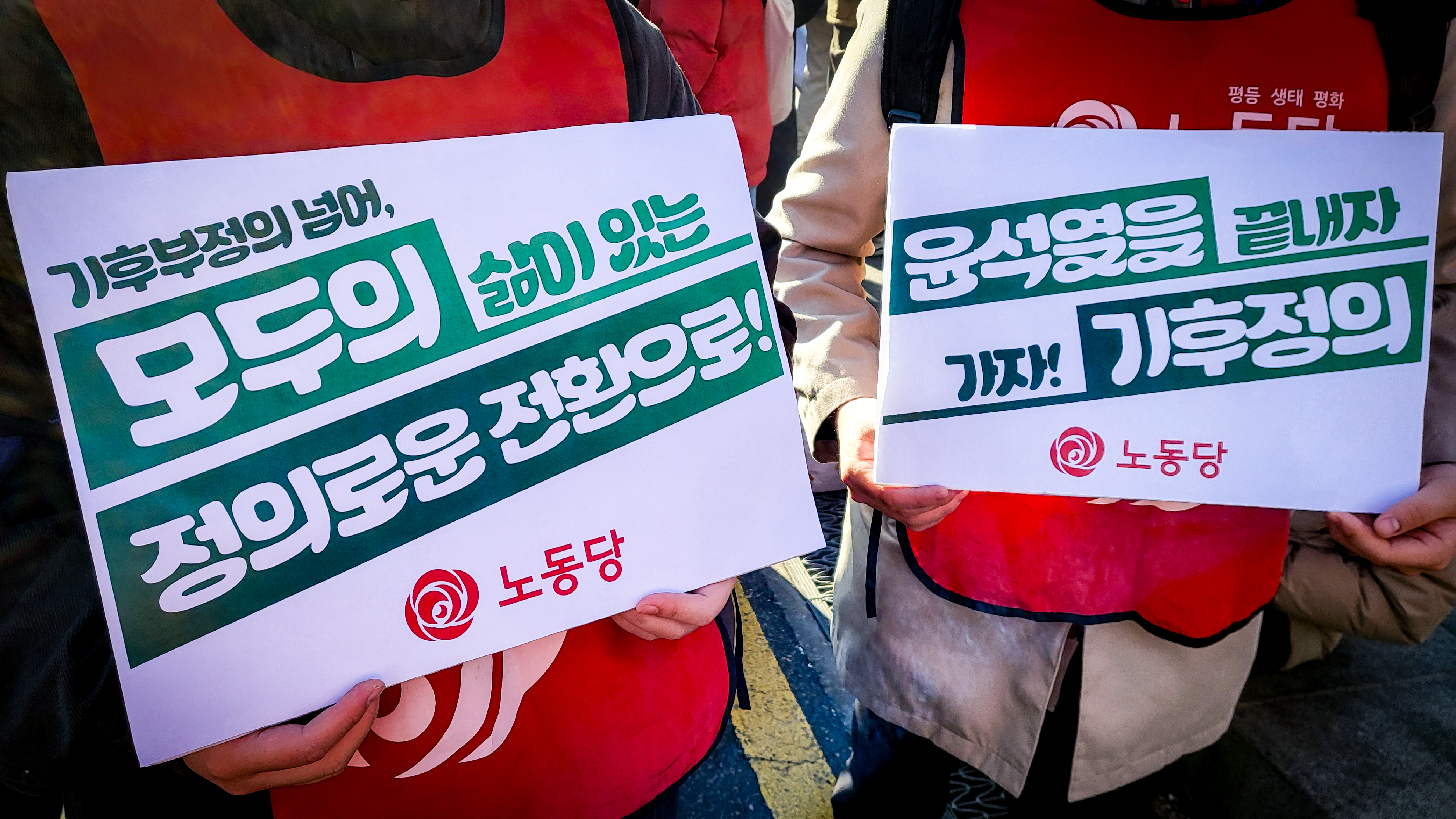 광화문 월대 앞에서 열린 <민주주의 기후정의 광장> 집회에 노동당이 함께했습니다. 4대강 사업 부활과 핵폭주로 시작하여, 산업전환과 기후재난을 모두 방기하는 무책임으로 끝난 윤석열 정권은 그야말로 기후악당 정권이었습니다. 윤석열 정권을 거치며, 재생에너지 전환은 더욱 어려워졌고, 에너지 민영화는 성큼 다가왔으며, 부정의한 산업전환으로 인해 노동자들은 벼랑 끝으로 밀려났습니다. 윤석열 하나만 탄핵한다면, 기후악당 윤석열이 남기고 간 우리 사회의 기후부정의들이 사라지지 않을 겁니다. 윤석열뿐 아니라 4대강을, 송전탑을, 신공항을, 핵발전을, 민영화를, 부정의한 산업전환을 모두 탄핵해야 합니다. 기후부정의를 탄핵하고, 노동자의 삶과 공공재생에너지가 있는 기후정의 체제로의 전환을 이뤄냅시다!