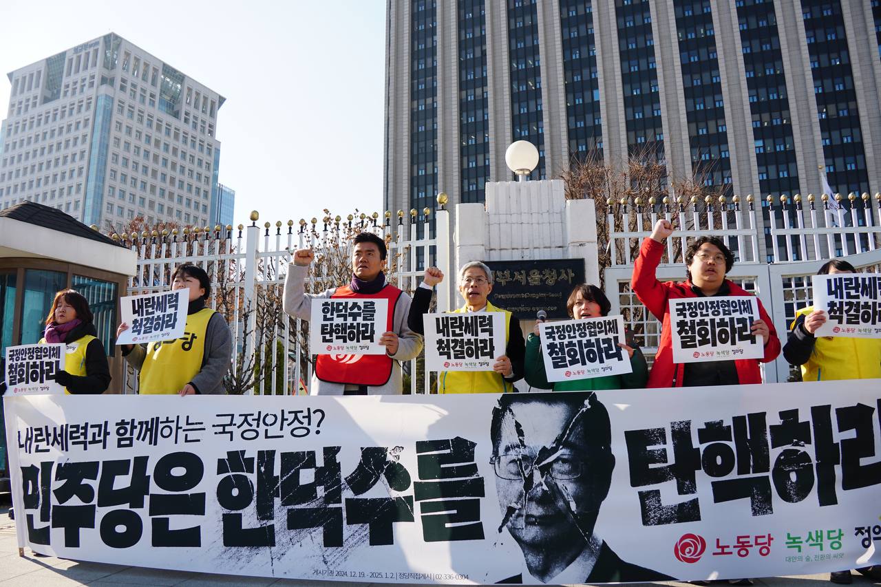 노동당은 사회대개혁을 바라는 광장의 시민들과 한 편에 서겠습니다. 윤석열의 하수인 한덕수를 즉각 탄핵할 것을 촉구합니다.
