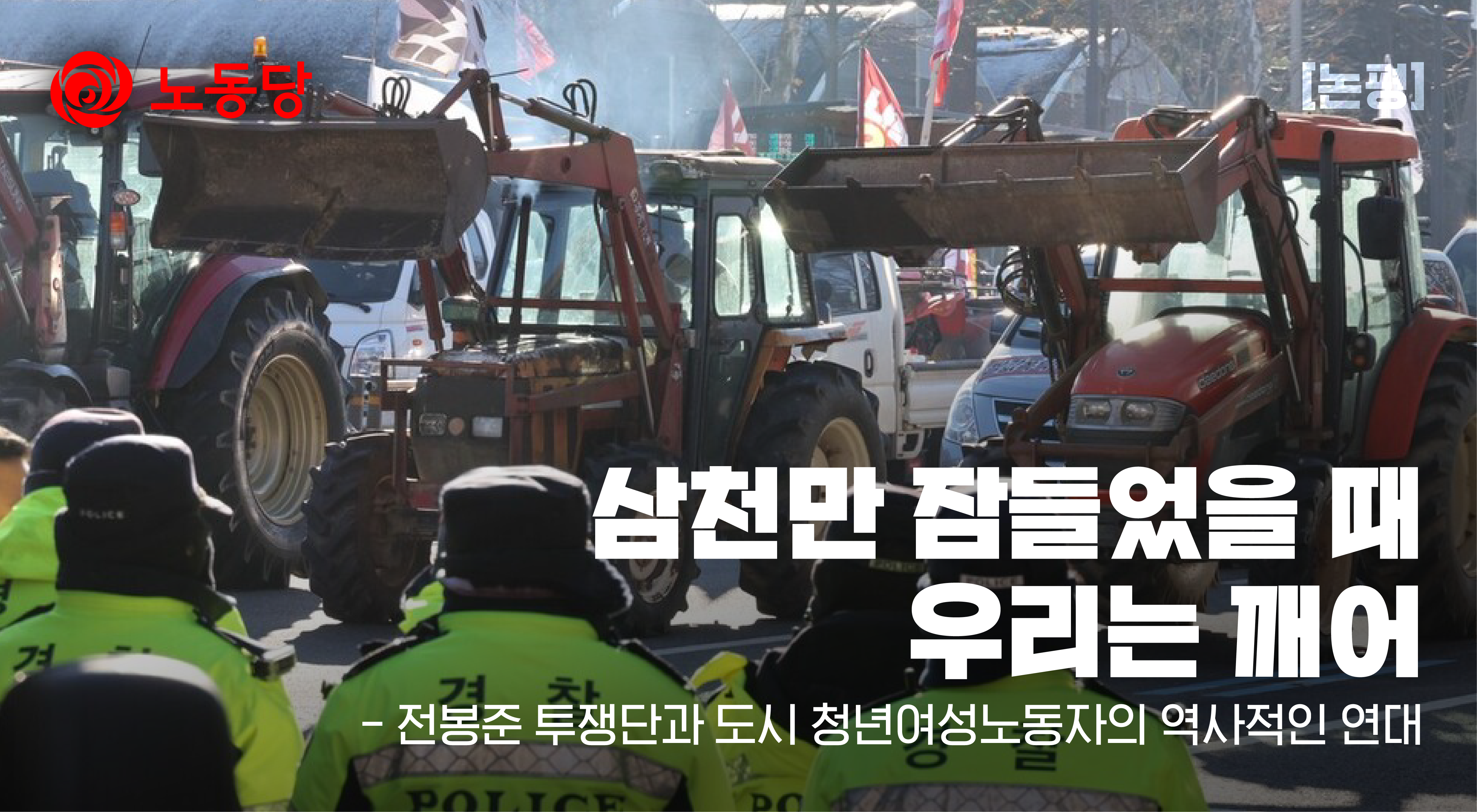 밤사이 이어진 남태령에서의 투쟁, 노동당 당원들 역시 긴급하게 달려나갔습니다. 그동안 뚫린 적 없던 남태령의 경찰 차벽은 새로운 세상을 열망하는 농민과 시민의 힘 앞에 기어이 뚫리고야 말았습니다. 박근혜 퇴진 트랙터 상경투쟁 이후 8년만에, 그리고 동학농민혁명 이후 130년만에 농민들은 서울 땅을 밟았고, 세상을 뒤엎을 힘을 보였습니다.