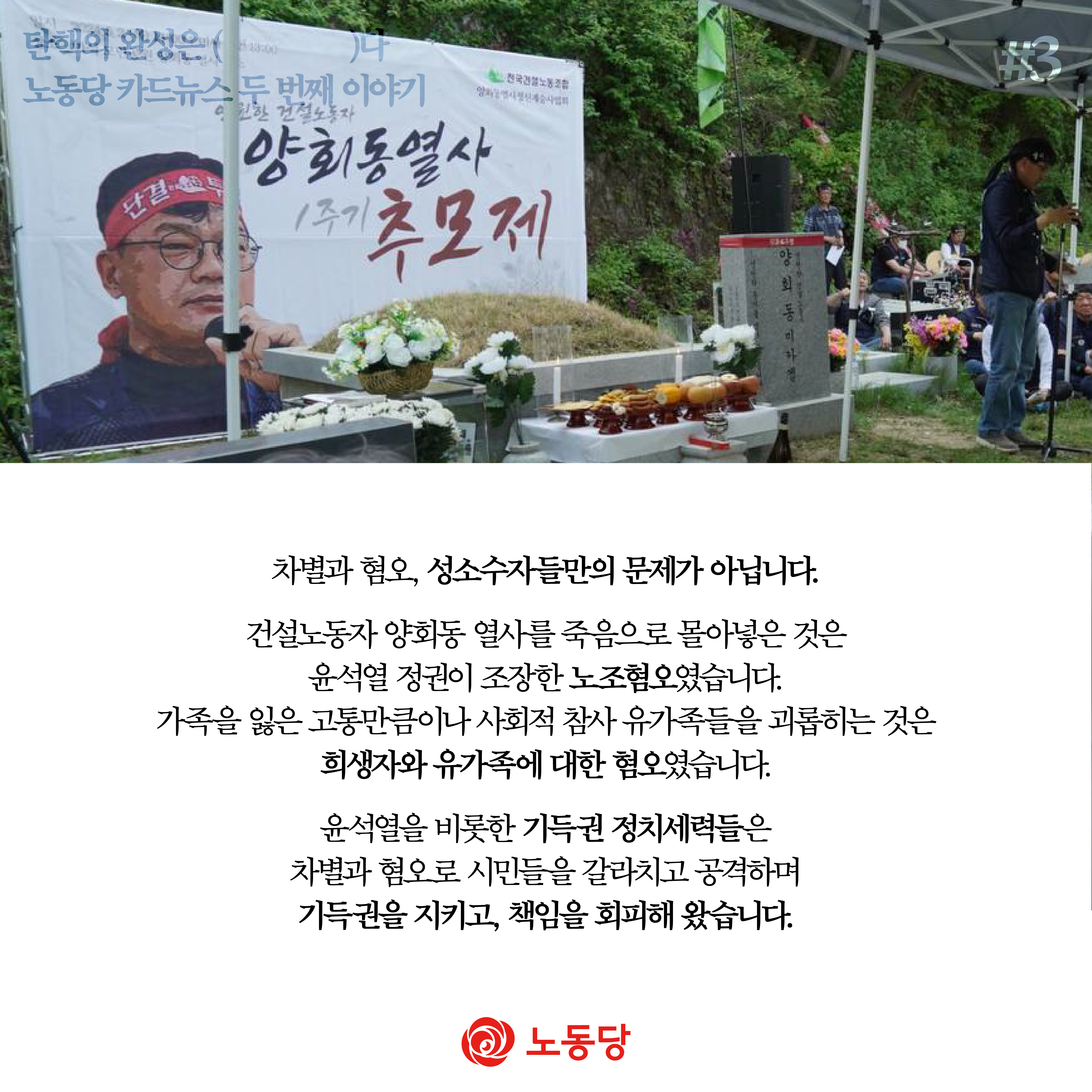 건설노동자 양회동 열사를 죽음으로 몰아넣은 것은 윤석열 정권이 조장한 노조혐오였습니다.