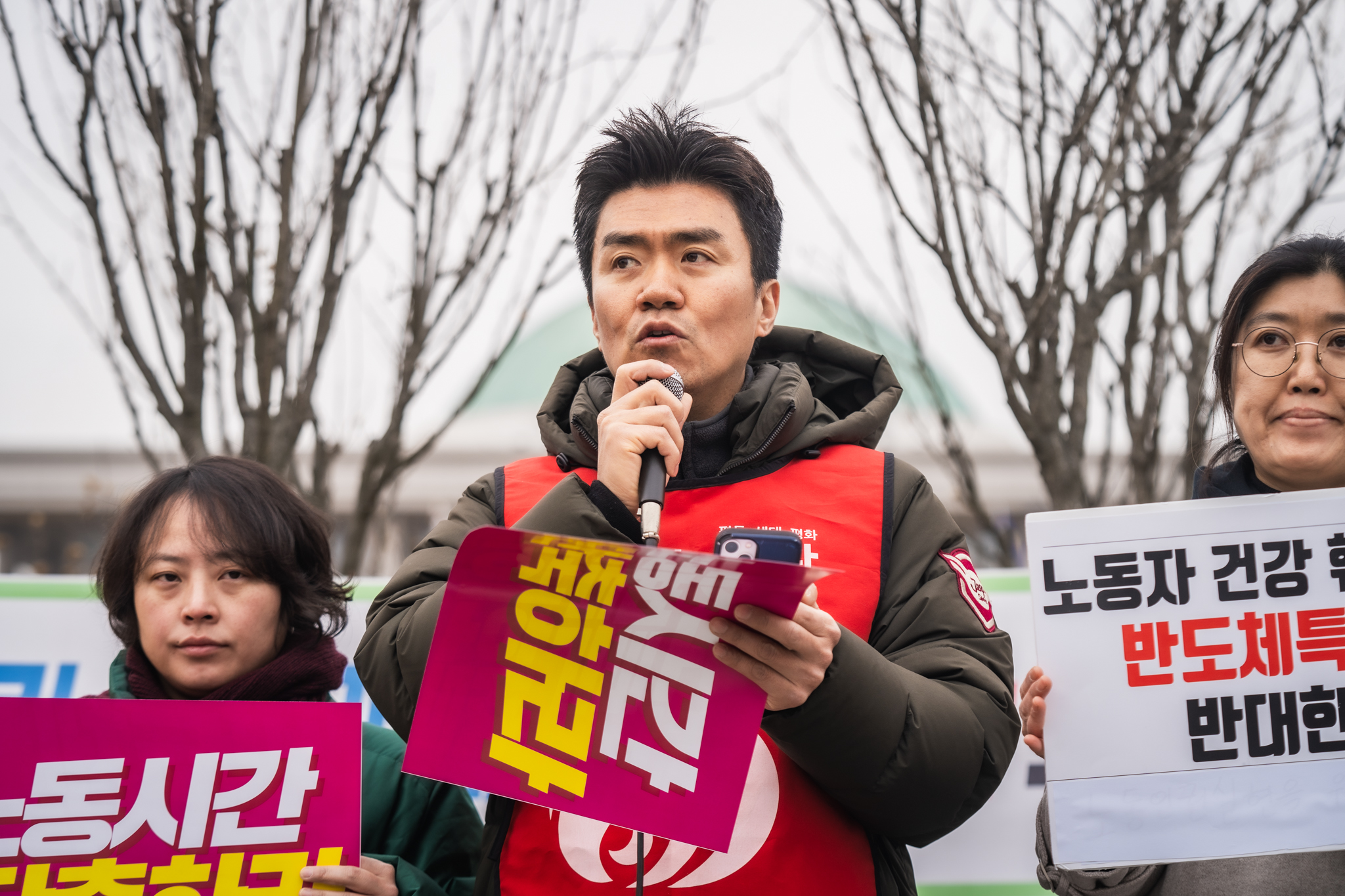 <반도체는 과로를 먹고 자라는가> 기자회견이 16일 목요일 국회 앞에서 열렸습니다.