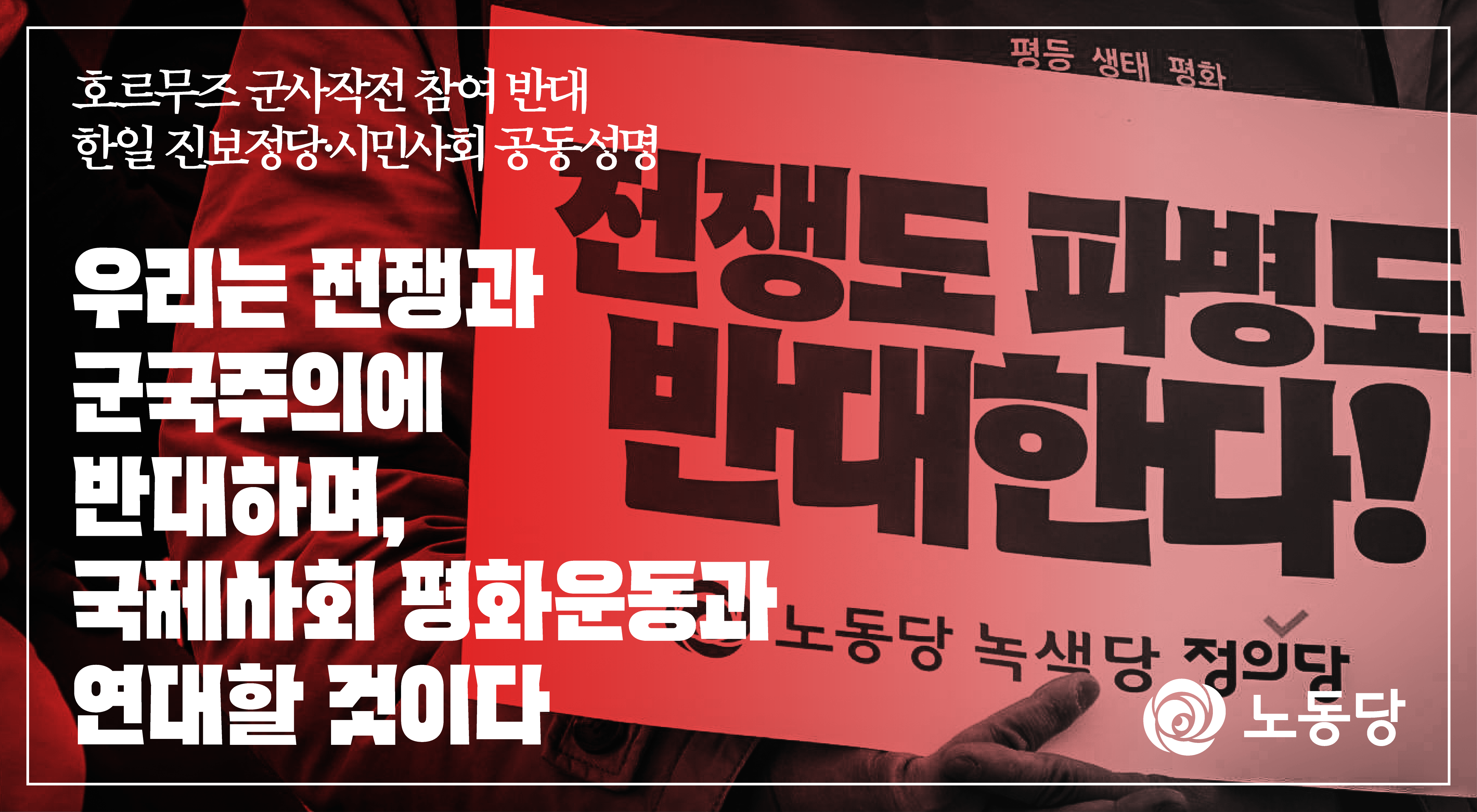 [호르무즈 군사작전 참여 반대 한일 진보정당·시민사회 공동성명] 우리는 전쟁과 군국주의에 반대하며, 국제사회 평화운동과 연대할 것이다