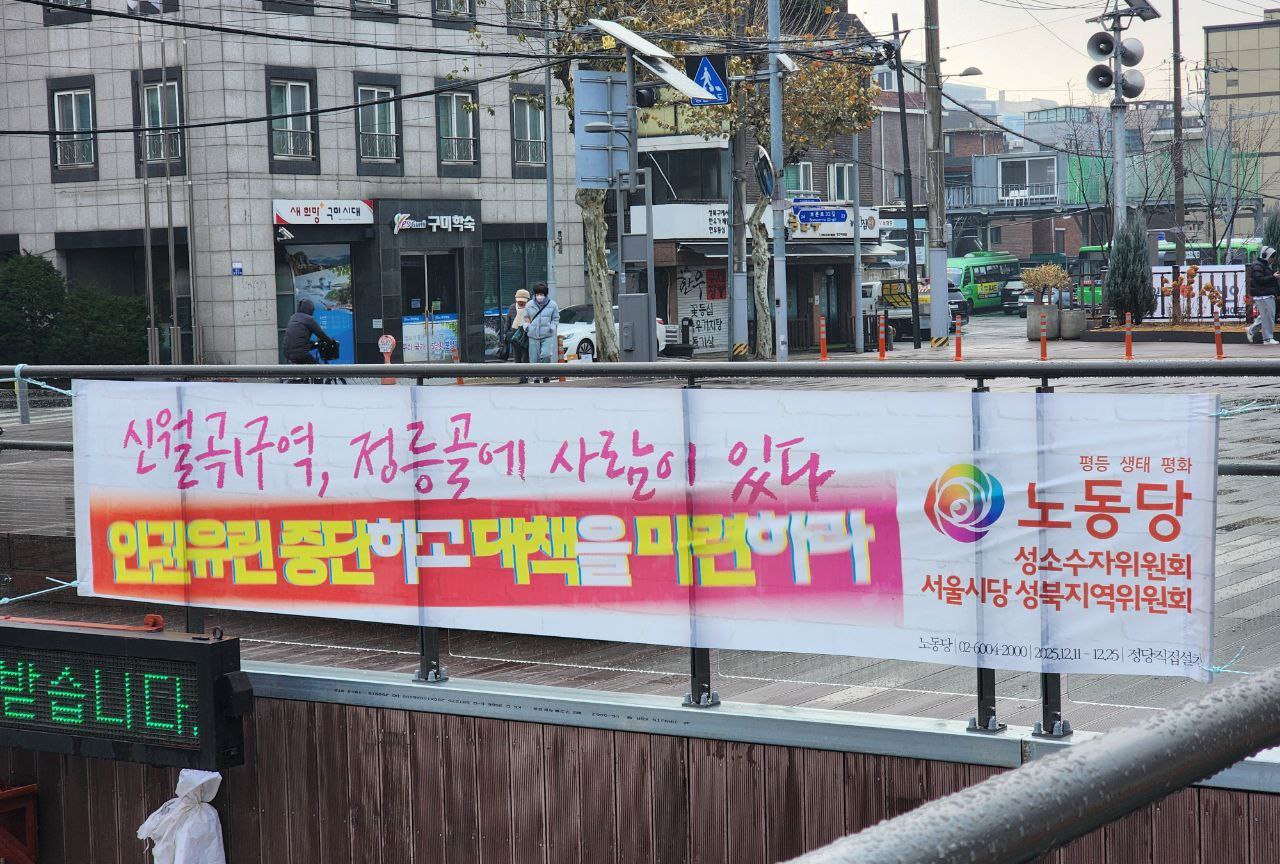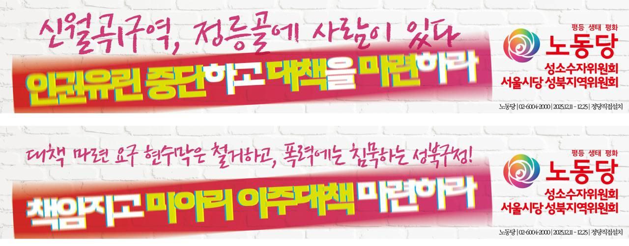 그러나 노동당 서울 성북지역위원회는 성북녹색당, 옥바라지선교센터, 신월곡1구역 주거대책위원회/연대조직팀, 정릉골 재개발 주거세입자대책위는 그 앞에서 집회를 진행할 수밖에 없었습니다.