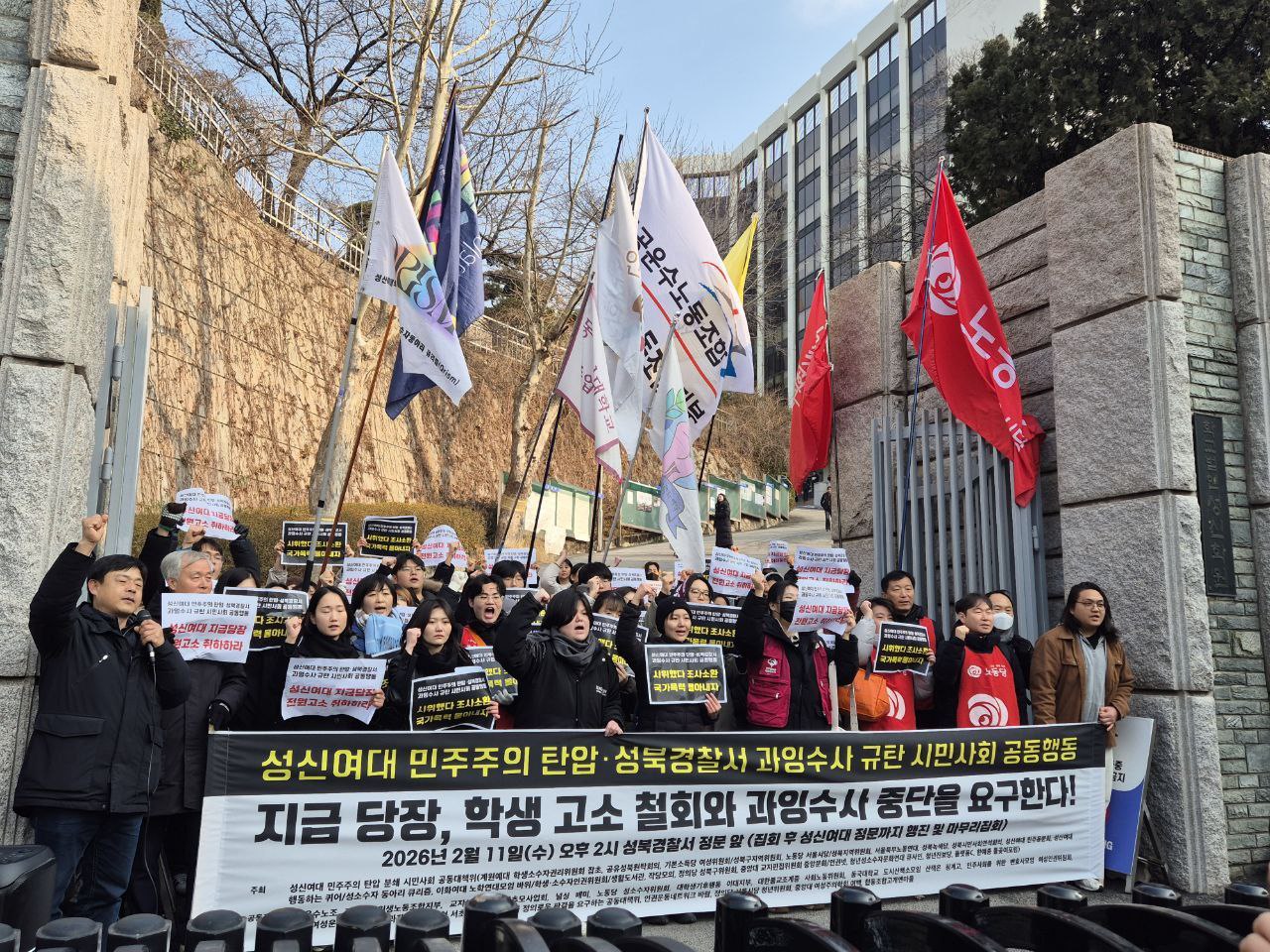 지난 2월 11일(수) 성신여대 민주주의 탄압ˑ성북경찰서 과잉수사 규탄 시민사회 공동행동을 진행했습니다.